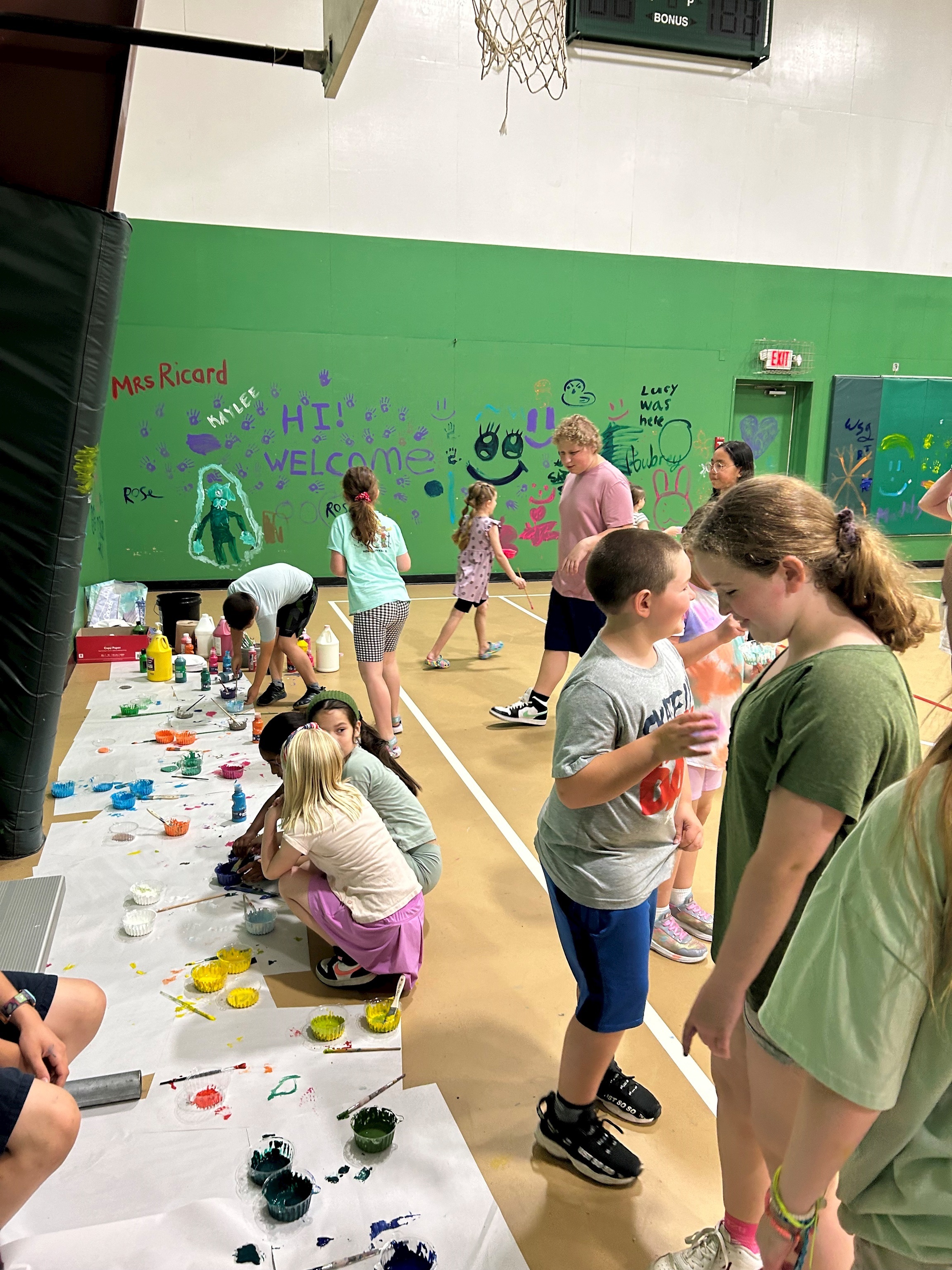 Children process these occasions differently than adults, so we found a developmentally appropriate way to engage them. Each class was given the opportunity to respectfully paint their names on the inside of the gym. During this activity, teachers discussed our Core Value of Civic-Mindedness, highlighting how generous forbearers provided our current gyms for the benefit of countless students over the decades. They also spoke about the remarkable generosity of the small group of anonymous donors who are funding the new Applewild Athletic & Wellness Center.